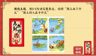 学生抽取卡片,根据抽到的卡片完成看图写话。