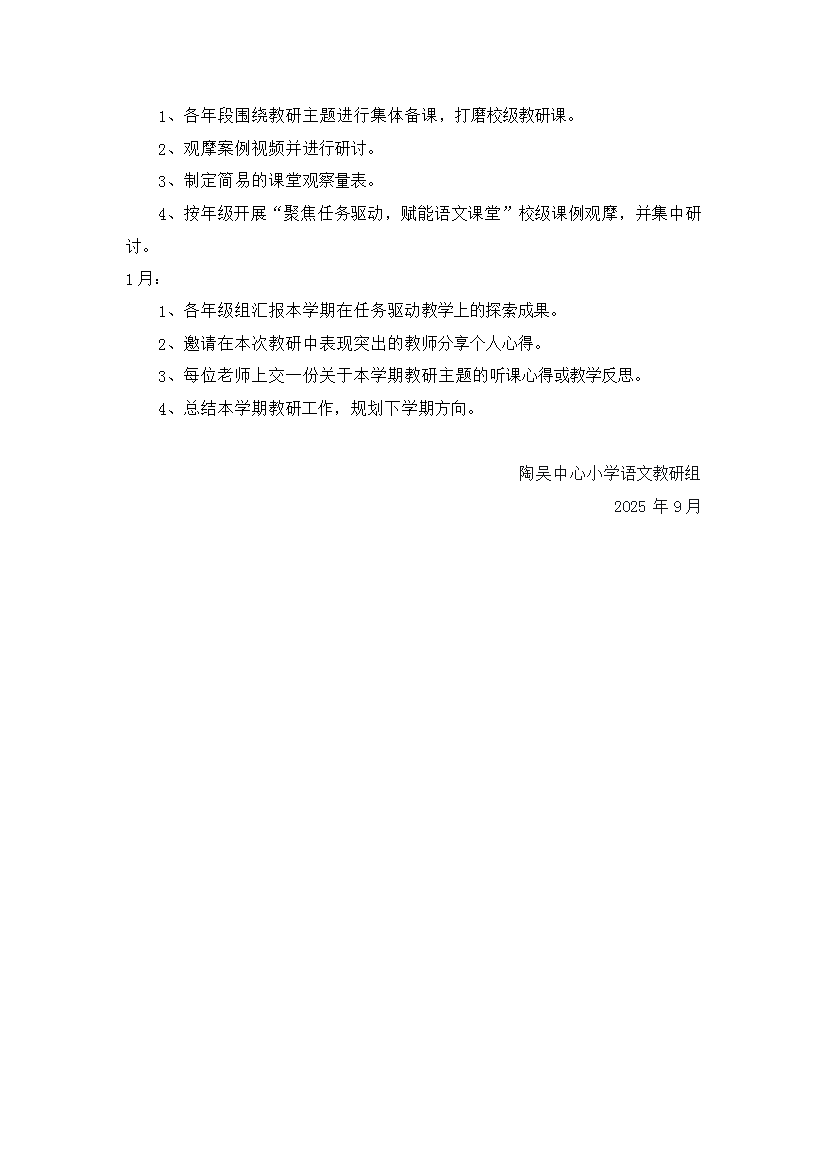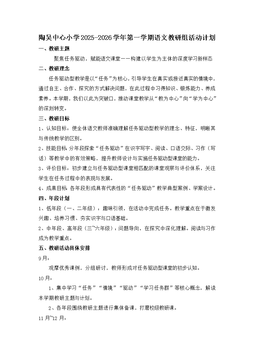 陶吴中心小学2025-2026学年第一学期语文教研组活动计划