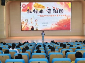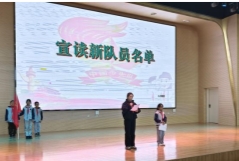 在宣读新队员名单环节,大队辅导员王若瑾老师郑重宣读了光荣加入中国少年先锋队的二年级新队员名单。紧接着,六年级老队员代表为新队员佩戴上鲜艳的红领巾。新老队员互敬队礼,象征着少先队精神的传承与接力。
