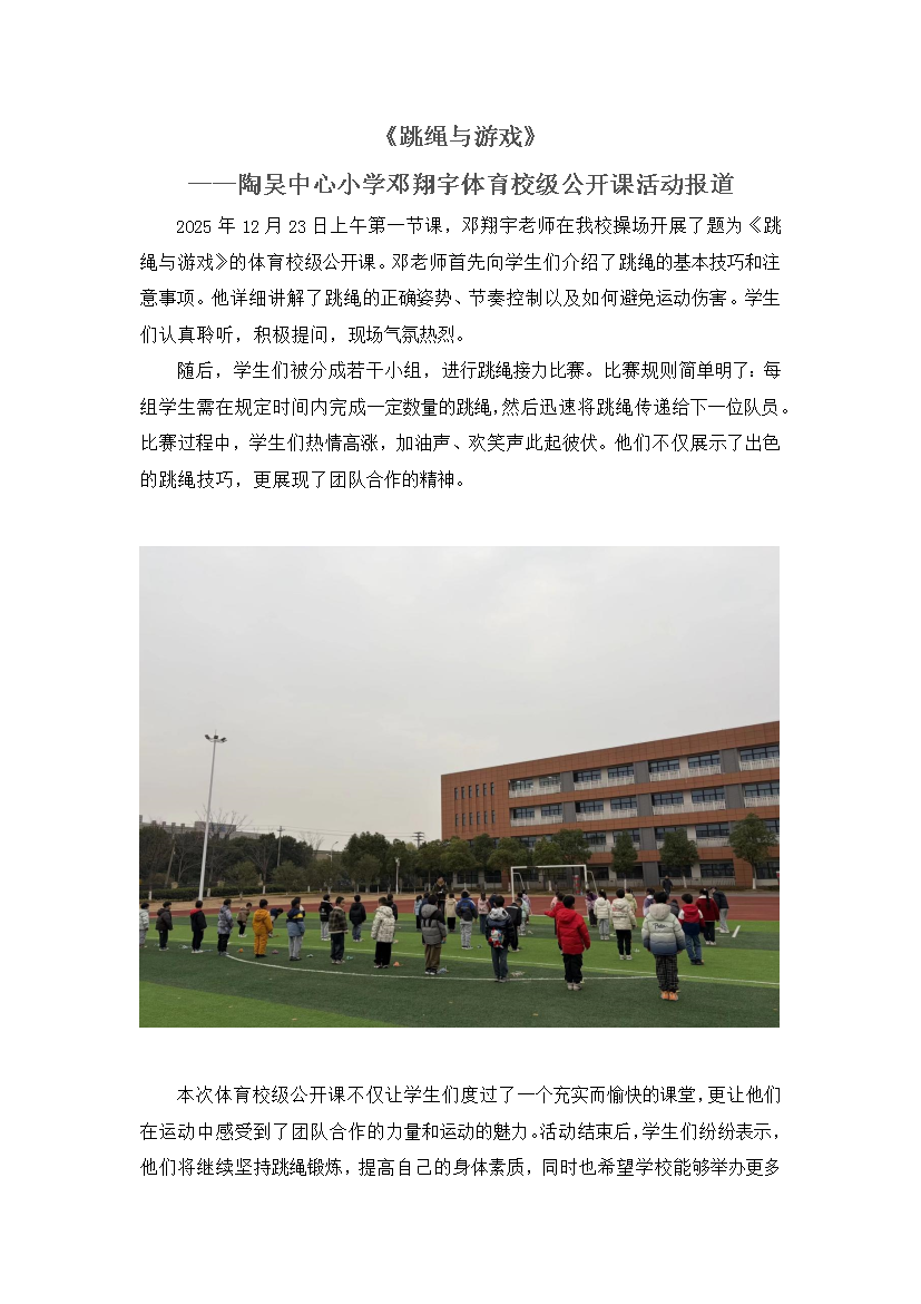 《跳绳与游戏》 ——陶吴中心小学邓翔宇体育校级公开课活动报道
