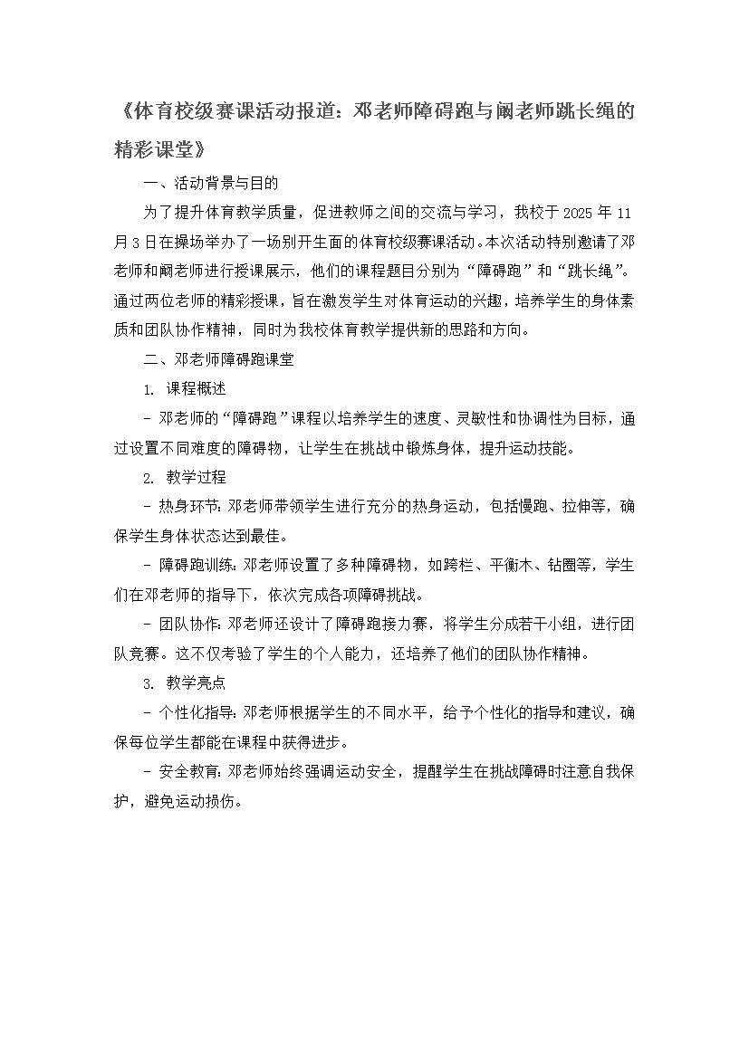 《跳绳与游戏》 ——陶吴中心小学邓翔宇体育校级公开课活动报道